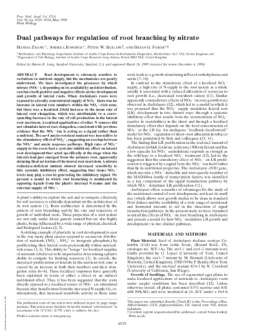 Dual pathways for regulation of root branching by nitrate.