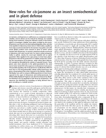 New roles for cis-jasmone as an insect semiochemical and in plant defense