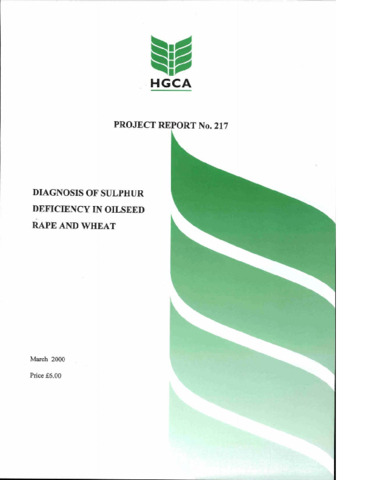 Diagnosis of sulphur deficiency in oilseed rape and wheat (HGCA Project Report No. 217).