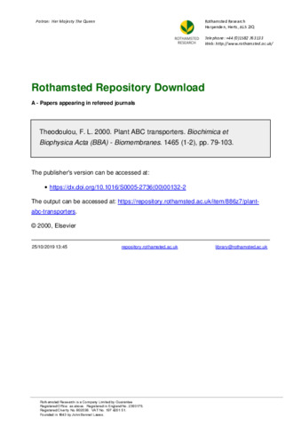 | Keywords | ABC transporter, P-glycoprotein, Multidrug resistance associated protein, PDR-5, Glutathione conjugate pump, Plant |