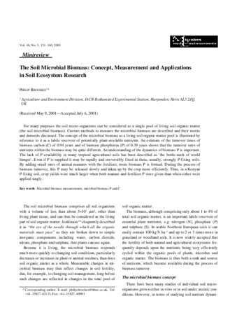 The soil microbial biomass: concept, measurement and applications in soil ecosystem research.