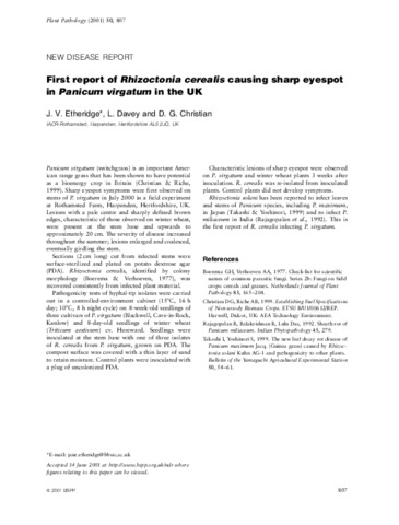 First report of Rhizoctonia cerealis causing sharp eyespot in Panicum virgatum in the UK