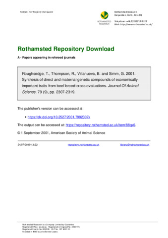 Synthesis of direct and maternal genetic compounds of economically important traits from beef breed-cross evaluations