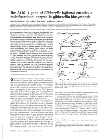 The P450-1 gene of Gibberella fujikuroi encodes a multifunctional enzyme in gibberellin biosynthesis.