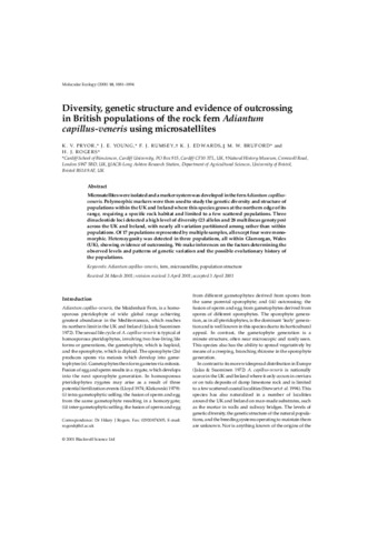 Diversity, genetic structure and evidence of outcrossing in British populations of the rock fern Adiantum capillus-veneris using microsatellites.