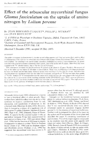 Effect of the arbuscular mycorrhizal fungus Glomus fasciculatum on the uptake of amino nitrogen by Lolium perenne L.