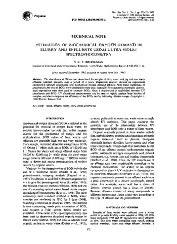 Estimation of biochemical oxygen demand in slurry and effluents using ultra-violet spectrophotometry.