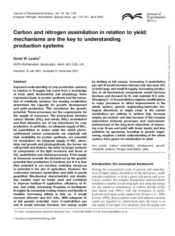 Carbon and nitrogen assimilation in relation to yield: mechanisms are the key to understanding production systems.