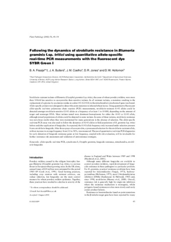 Following the dynamics of strobilurin resistance in Blumeria graminis f.sp. tritici using quantitative allele-specific real-time PCR measurements with the fluorescent dye SYBR Green 1