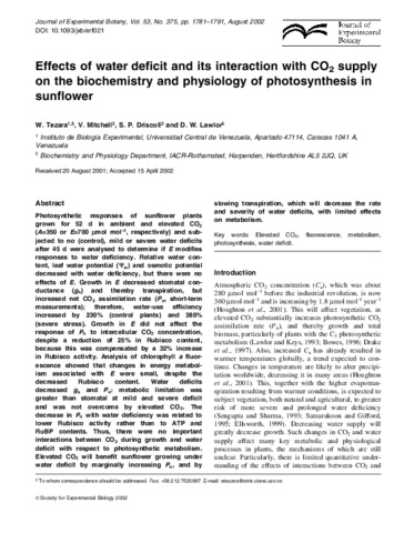 Effects of water deficit and its interaction with CO2 supply on the biochemistry and physiology of photosynthesis in sunflower.