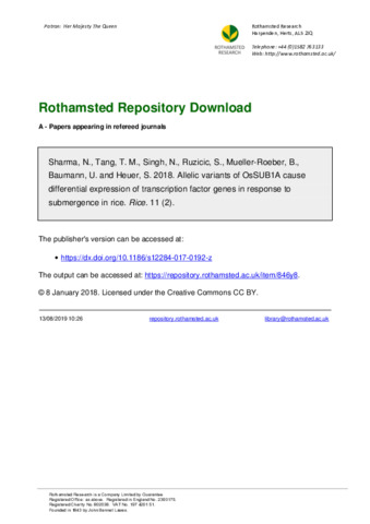 Allelic variants of OsSUB1A cause differential expression of transcription factor genes in response to submergence in rice