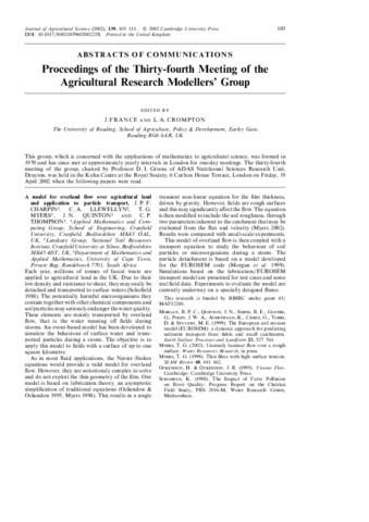 | Additional information | Journal of Agricultural Science (2002), 139, 103–111. � 2002 Cambridge University Press DOI: 10.1017�S002185960200223X Printed in the United Kingdom 103 ABSTRACTS OF COMMUNICATIONS Proceedings of the Thirty-fourth Meeting of the Agricultural Research Modellers’ Group |