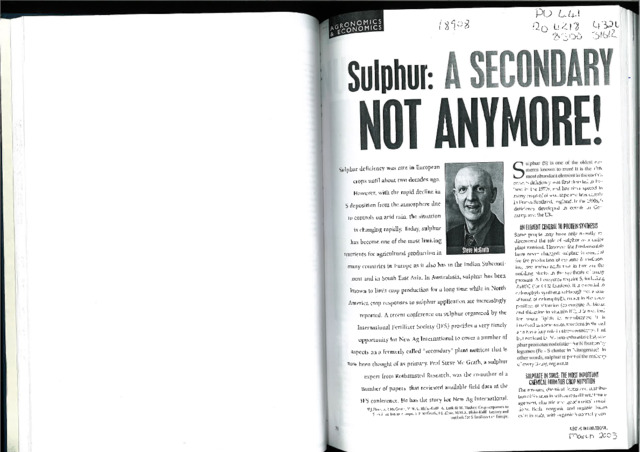 | Project | 441, 511, Sulphur dynamics in the soil/crop/atmosphere system, Project: 8500 |