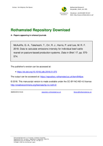 Data to calculate emissions intensity for individual beef cattle reared on pasture-based production systems