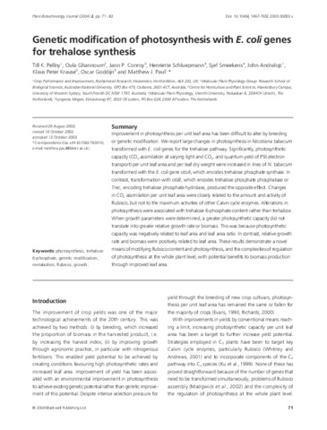 Genetic modification of photosynthesis with E. coli genes for trehalose synthesis