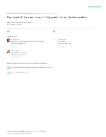 Physiological characterization of 'stay green' mutants in durum wheat.