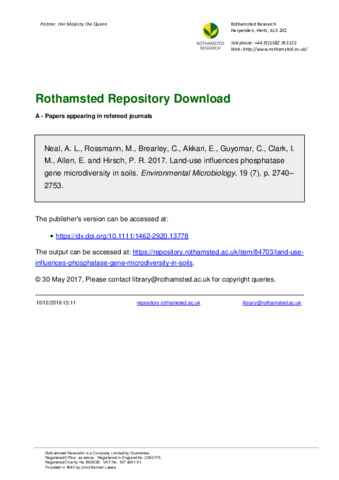 | Additional information | Rothamsted Research receives strategic funding from the UK Biotechnology and Biological Science Research Council (grant BBS/E/C/00005196). PubMedID 28447386 |