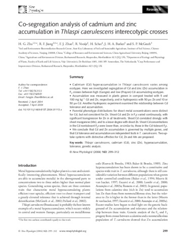 Co-segregation analysis of cadmium and zinc accumulation in Thlaspi caerulescens interecotypic crosses