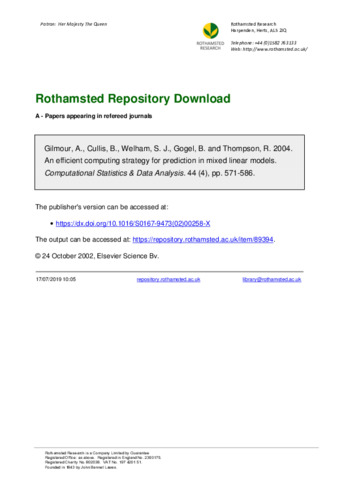 | Keywords | REML, BLUP, Linear mixed models, Prediction |