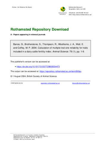 The advent of genetic evaluations for fertility traits in the UK offers valuable information to farmers that can be used to control fertility problems and safeguard against involuntary culling. In addition to estimated genetic merit, proof reliabilities are required to make correct use of this genetic information. Exact reliabilities, based on the inverse of the coefficient matrix, cannot be estimated for large data sets because of computational restrictions. A method to calculate approximate reliabilities was implemented based on a six-trait sire model. Traits considered were interval between first and second calving, interval between first calving and first service, non-return rate 56 days post first service, number of inseminations per conception, daily milk yield at test nearest day 110 and body condition score. Sire reliabilities were calculated in four steps. Firstly, the number of effective daughters was calculated for each bull, separately for each trait, based on total number of daughters and daughter distribution across herd-year-seasons. Secondly, multiple-trait reliabilities were calculated, based on bull daughter contribution, applying selection index theory on independent daughter groups. Thirdly, (great-) grand-daughter contribution was added to the reliability of each bull, using daughter-based reliability of sons and maternal grandsons. An adjustment was made to account for the probability of bull and son or grandson having daughters in the same herd-year-season. Without the adjustment, reliabilities were inflated by proportionately 0·15 to 0·25. Finally, parent (sire and maternal grandsire) contribution was added to the reliability of each bull. The procedure was first tested on a data subset of 28 061 cow records from 285 bulls. Approximate reliabilities were compared with exact estimates based on the inverse of the coefficient matrix. Mean absolute differences ranged from 0·014 to 0·020 for the six traits and correlation between exact and approximate estimates neared unity. In a full-scale application, sire reliability for the fertility traits increased by proportionately 0·47 to 0·79 over single-trait estimates and the number of bulls with a reliability of 0·60 or more increased by 42 to 115%.