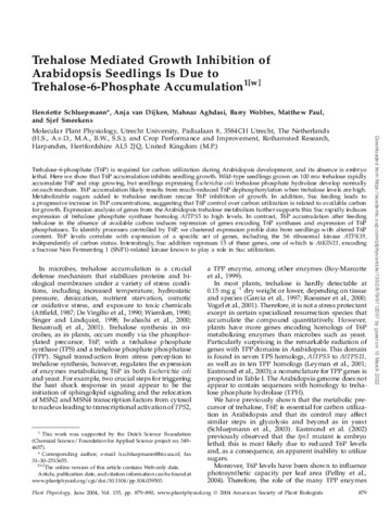 Trehalose mediated growth inhibition of arabidopsis seedlings is due to trehalose-6-phosphate accumulation
