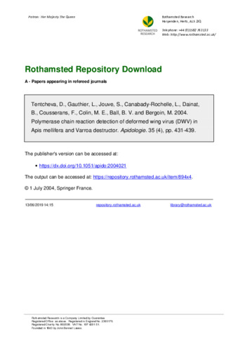| Project | 509, The epidemiology of honey bee viruses transmitted by Varroa destructor |