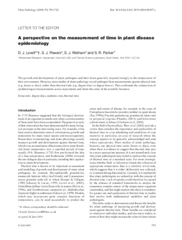 The growth and development of plant pathogens and their hosts generally respond strongly to the temperature of their environment. However, most studies of plant pathology record pathogen/host measurements against physical time (e.g. hours or days) rather than thermal time (e.g. degree-days or degree-hours). This confounds the comparison of epidemiological measurements across experiments and limits the value of the scientific literature.