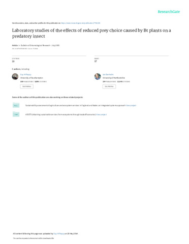 Laboratory studies of the effects of reduced prey choice caused by Bt plants on a predatory insect.