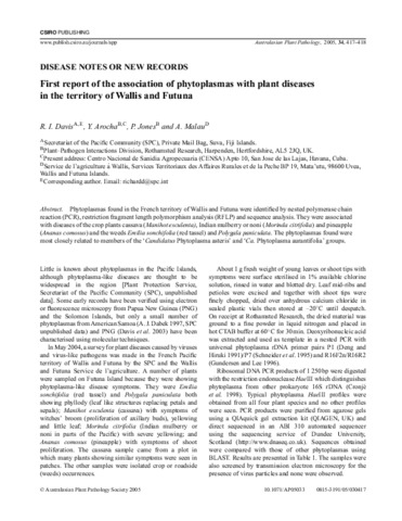 First report of the association of phytoplasmas with plant diseases in the territory of Wallis and Futuna
