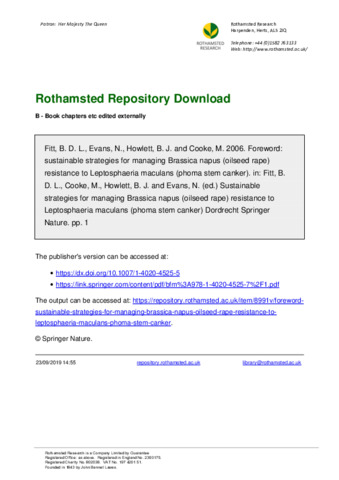 Sustainable strategies for managing Brassica napus (oilseed rape) resistance to Leptosphaeria maculans (phoma stem canker).
