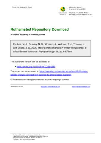 Major genetic changes in wheat with potential to affect disease tolerance.