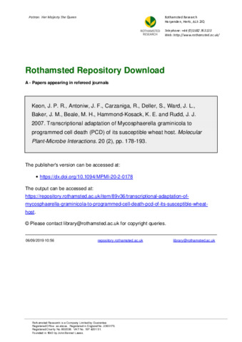 Transcriptional adaptation of Mycosphaerella graminicola to programmed cell death (PCD) of its susceptible wheat host.
