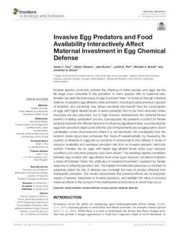 | Keywords | Maternal effects, Chemical defence, Invasive species, Ladybirds, Alkaloids |