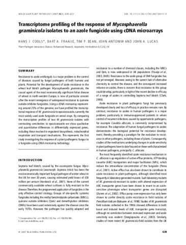 Transcriptome profiling of the response of Mycosphaerella graminicola isolates to an azole fungicide using cDNA microarrays