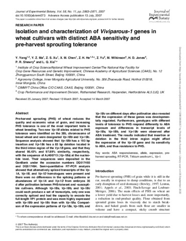 Isolation and characterization of Viviparous-1 genes in wheat cultivars with distinct ABA sensitivity and pre-harvest sprouting tolerance