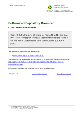 A low-cost repellent for malaria vectors in the Americas: results of two field trials in Guatemala and Peru.