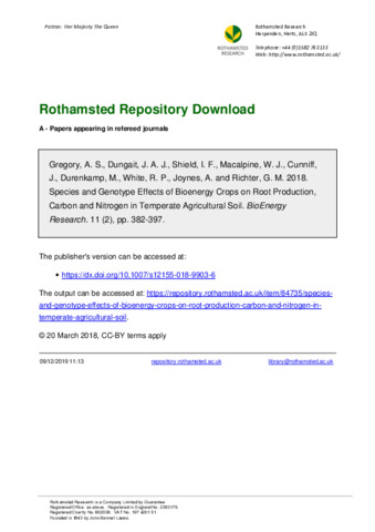 | Additional information | This work formed part of the ‘Maximising carbon retention in soils’ project (BBS/E/C/00005214) funded by the UK Biotechnology and Biological Sciences Research Council (BBSRC). The field experiment was established under the Bioenergy from Miscanthus And Salix Species (BioMASS) project (BB/G016216/1) of the BBSRC Sustainable Bioenergy Centre. |
