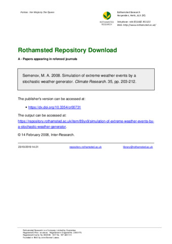 | Project | Centre for Mathematical and Computational Biology (MCB), Application of non-linear mathematics and stochastic modelling to biological systems, Vulnerability of UK agriculture to extreme events |