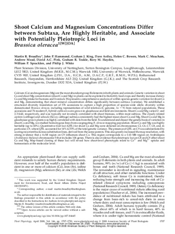 Shoot calcium and magnesium concentrations differ between subtaxa, are highly heritable, and associate with potentially pleiotropic loci in Brassica oleracea.