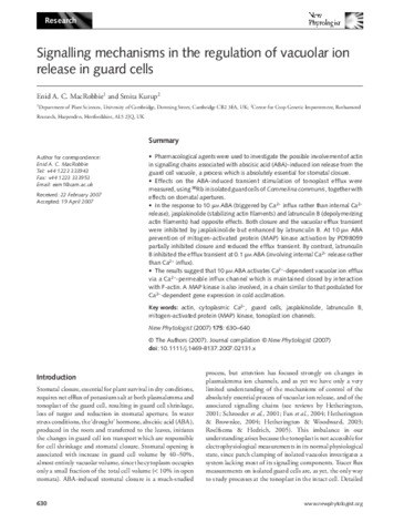 Signalling mechanisms in the regulation of vacuolar ion release in guard cells.