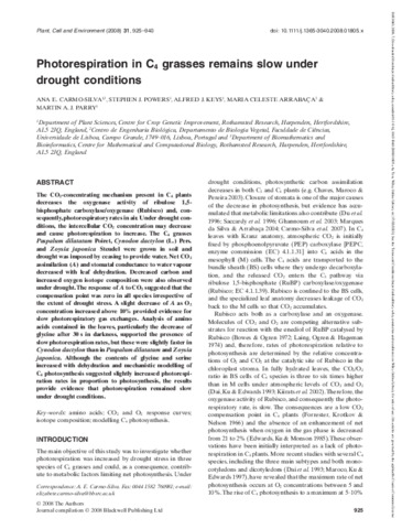 | Additional information | [Carmo-Silva, Ana E.; Keys, Alfred J.; Parry, Martin A. J.] Rothamsted Res, Ctr Crop Genet Improvement, Dept Plant Sci, Harpenden AL5 2JQ, Herts, England; [Carmo-Silva, Ana E.; Arrabaca, Maria Celeste] Univ Lisbon, Fac Ciencias, Dept Biol Vegetal, Ctr Engn Biol, P-1749016 Lisbon, Portugal; [Powers, Stephen J.] Rothamsted Res, Ctr Math & Computat Biol, Dept Biomath & Bioinformat, Harpenden AL5 2JQ, Herts, England |