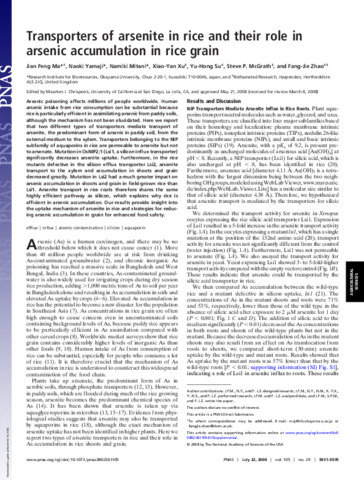 Transporters of arsenite in rice and their role in arsenic accumulation in rice grain.