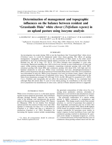 Determination of management and topographic influences on the balance between resident and 'Grasslands Huia' white clover (Trifolium repens ) in an upland pasture using isozyme analysis