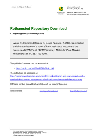Identification and characterization of a novel efficient resistance response to the furoviruses SBWMV and SBCMV in barley.
