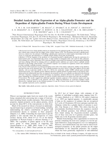 Detailed analysis of the expression of an alpha-gliadin promoter and the deposition of alpha-gliadin protein during wheat grain development.