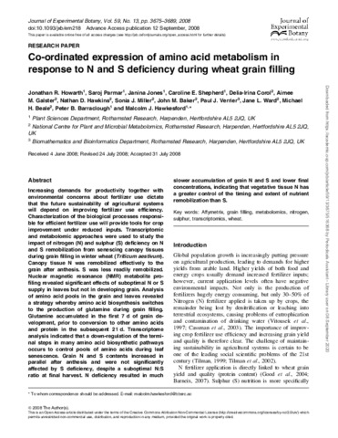 Co-ordinated expression of amino acid metabolism in response to N and S deficiency during wheat grain filling.