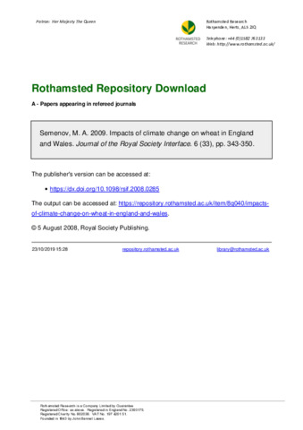 | Keywords | drought and heat stress, wheat simulation model, stochastic weather generator, UKCIP02, LARS-WG, Sirius |