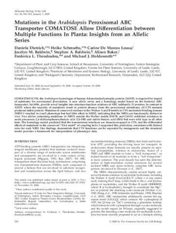 Dietrich, D., Schmuths, H., De Marcos Lousa, C., Baldwin, J. M., Baldwin, S. A., Baker, A., Theodoulou, Freddie