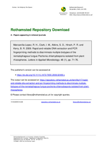 Rapid and reliable DNA extraction and PCR fingerprinting methods to discriminate multiple biotypes of the nematophagous fungus Pochonia chlamydosporia isolated from plant rhizospheres
