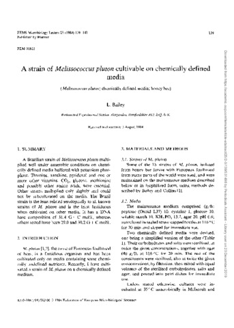 A strain of Melissococcus pluton cultivable on chemically defined media